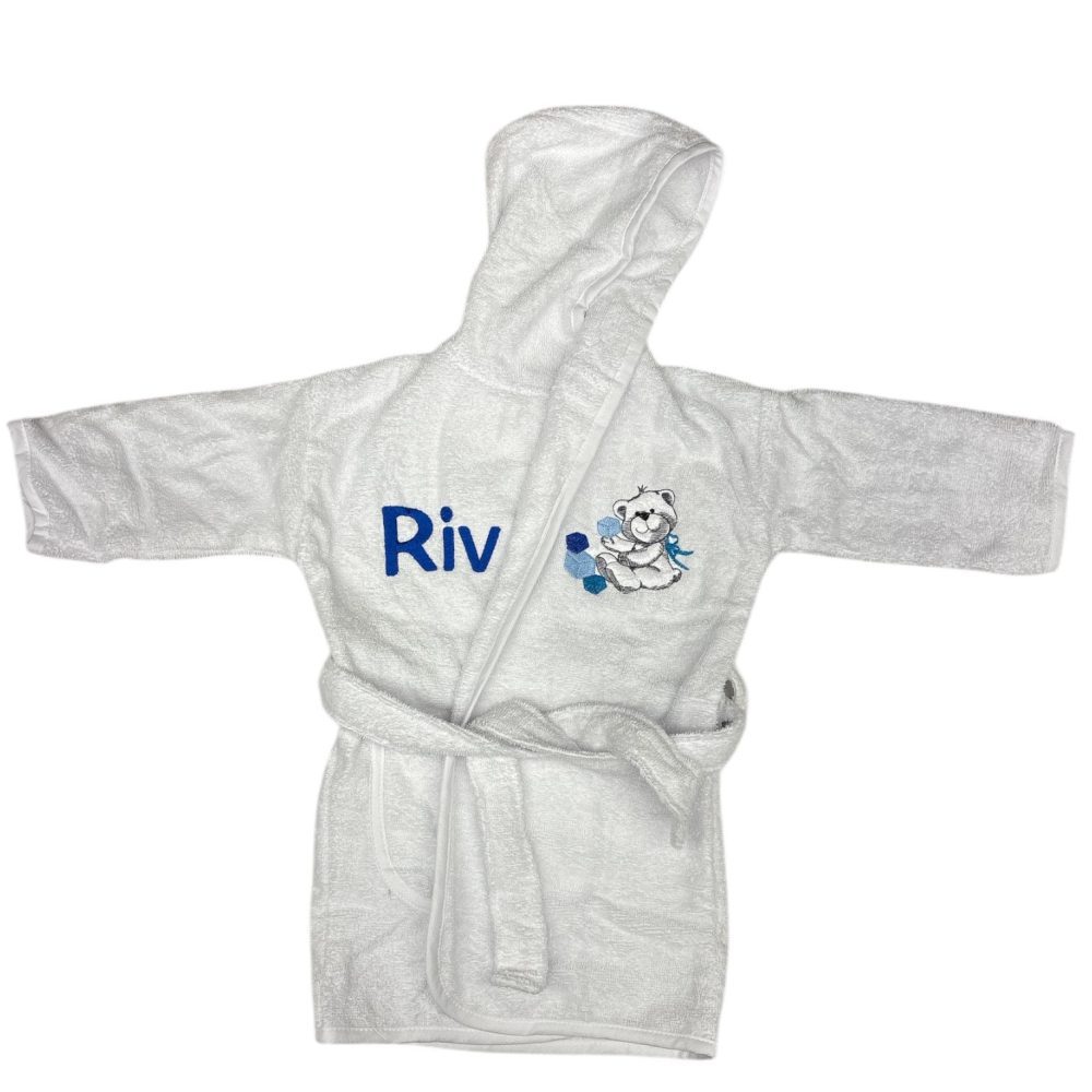 Geef jouw kindje een eigen stijl, comfort en warmte met een gepersonaliseerde baby badjas met naam van Borduurstudio ’t Vissertje.