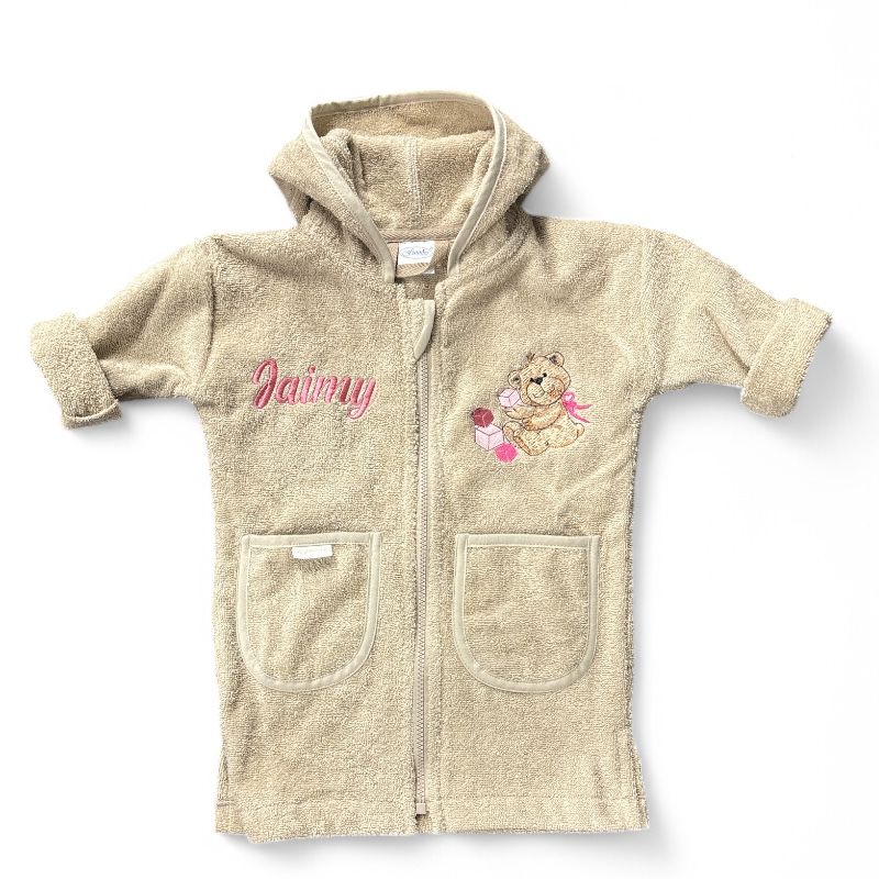 Kies voor een gepersonaliseerde baby badjas met naam die zowel uniek als praktisch is. Dankzij de hoogwaardige borduring blijft de naam en afbeelding prachtig, was na was. Deze zachte badjas baby is comfortabel, absorberend en wordt al snel een favoriet voor elke dag.