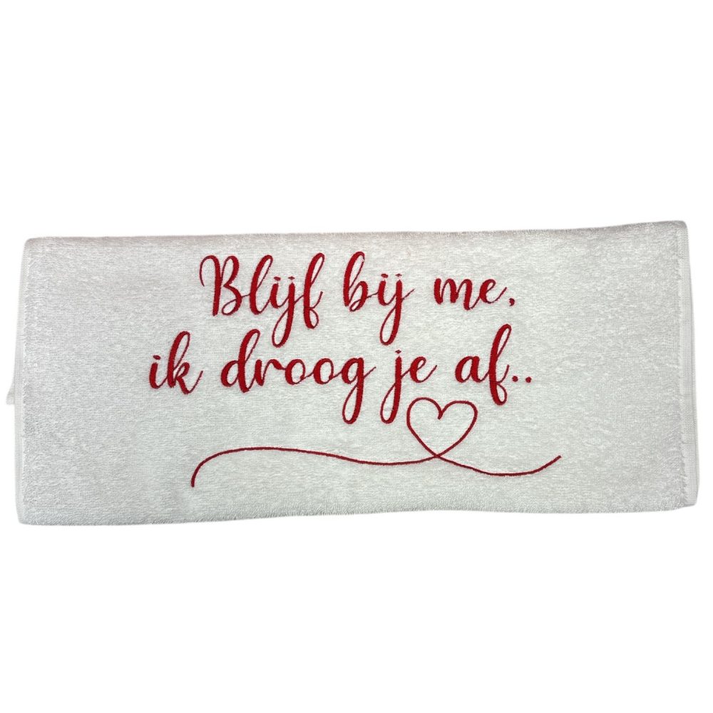 Verras je geliefde met een uniek en praktisch cadeau: deze zachte handdoek met liefdevolle borduring. De handdoeken zijn gemaakt van comfortabel, absorberend materiaal en voorzien van een mooie borduurtekst met een romantische of speelse boodschap.