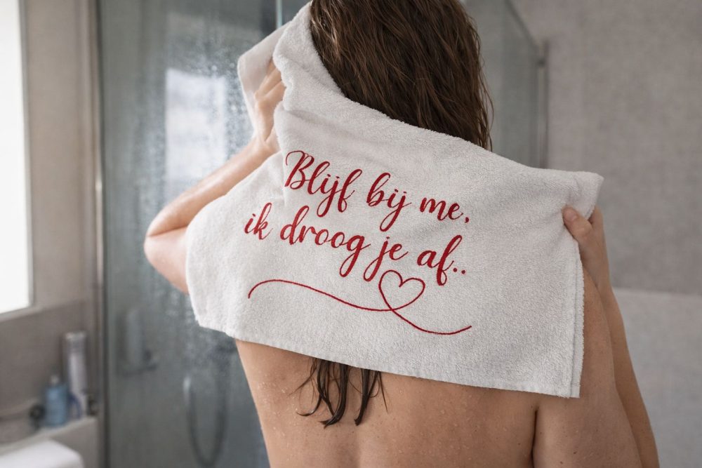 Dankzij het stijlvolle borduurwerk blijven de teksten langdurig mooi, zelfs na veelvuldig wassen. De handdoeken zijn ideaal voor gebruik in de badkamer, als decoratief element of als origineel cadeau voor Valentijnsdag, een jubileum, verjaardag of zomaar een lief gebaar.