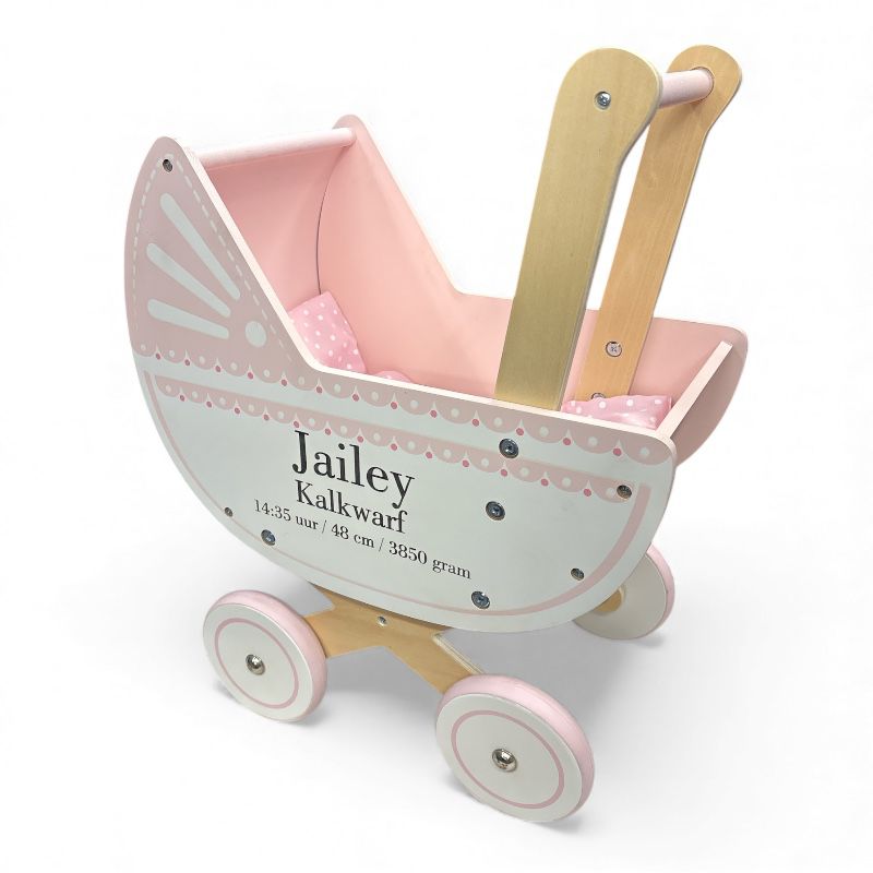 Houten Poppenwagen met Naam – Persoonlijk Speelplezier
