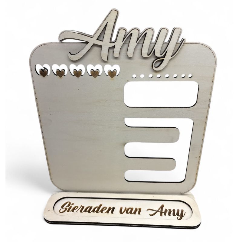 Houten Sieraden Rekje – Decoratieve Sieraden Houder met Naam