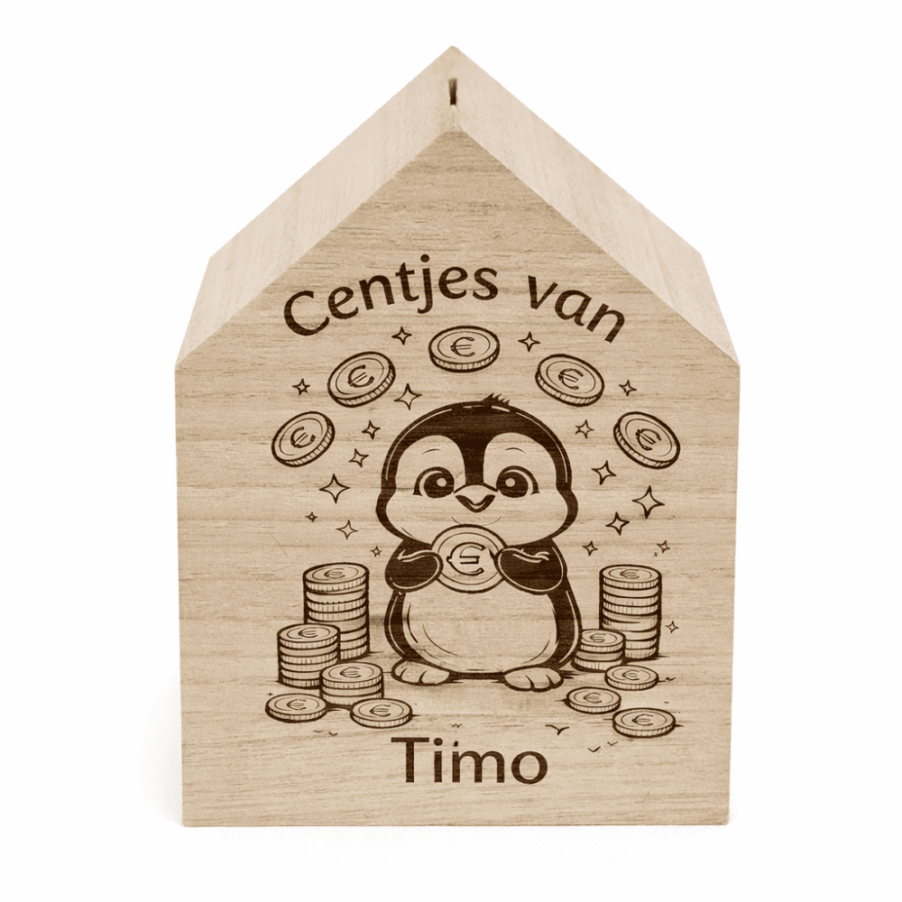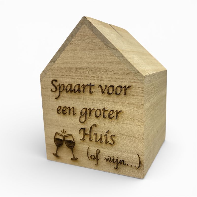 Houten Spaarpot met Naam in Huisvorm – Persoonlijk en Tijdloos