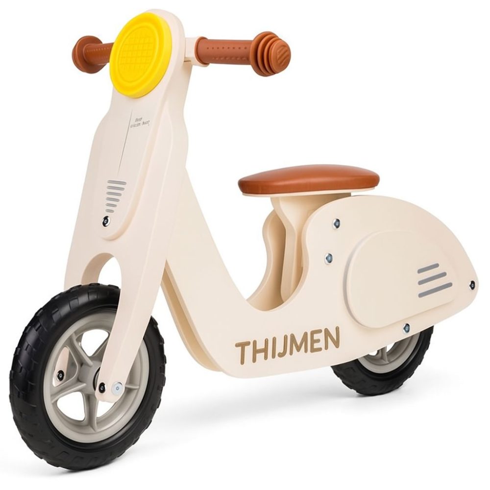 Stoer, stijlvol en persoonlijk – dat is deze houten loopfiets scooter met naam!