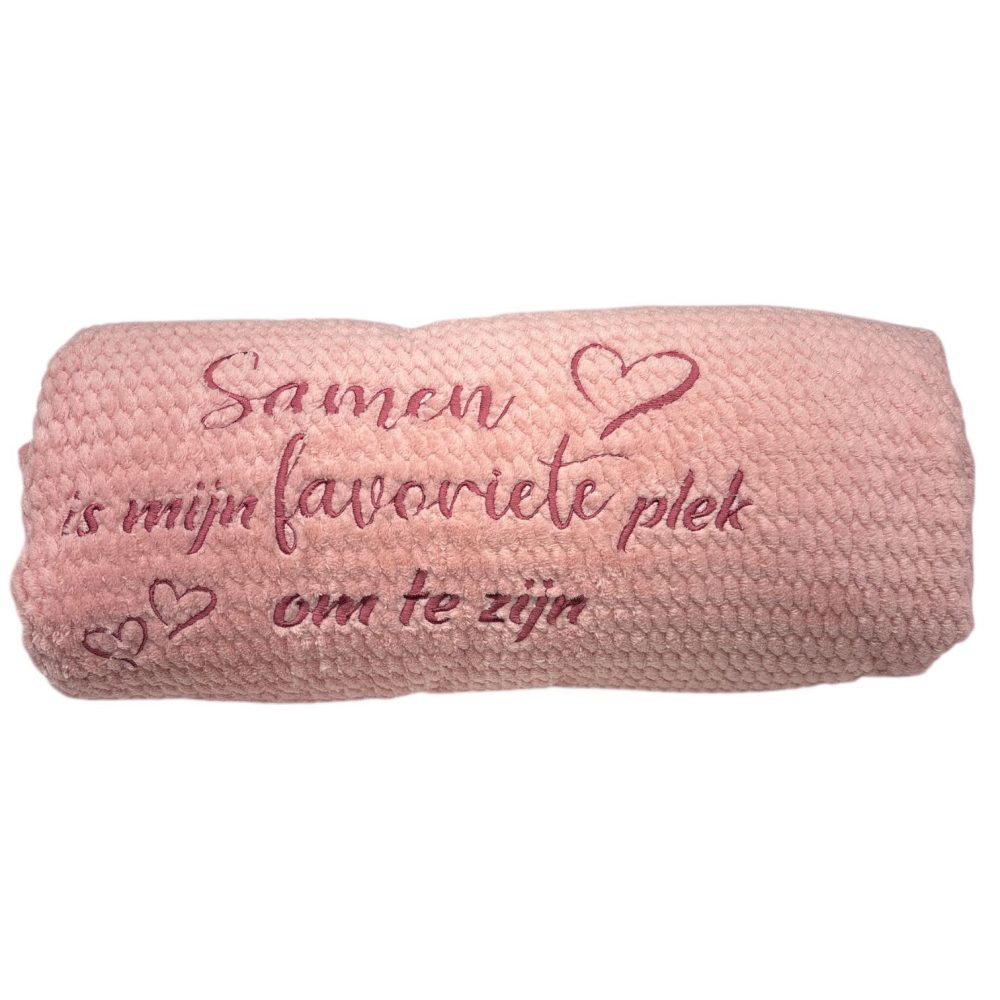 De plaids zijn verkrijgbaar in verschillende kleuren en teksten, waardoor je eenvoudig een variant kiest die perfect past bij jouw relatie of gelegenheid. Ideaal als Valentijnscadeau, jubileumgeschenk, bruiloftscadeau of gewoon als lief gebaar.